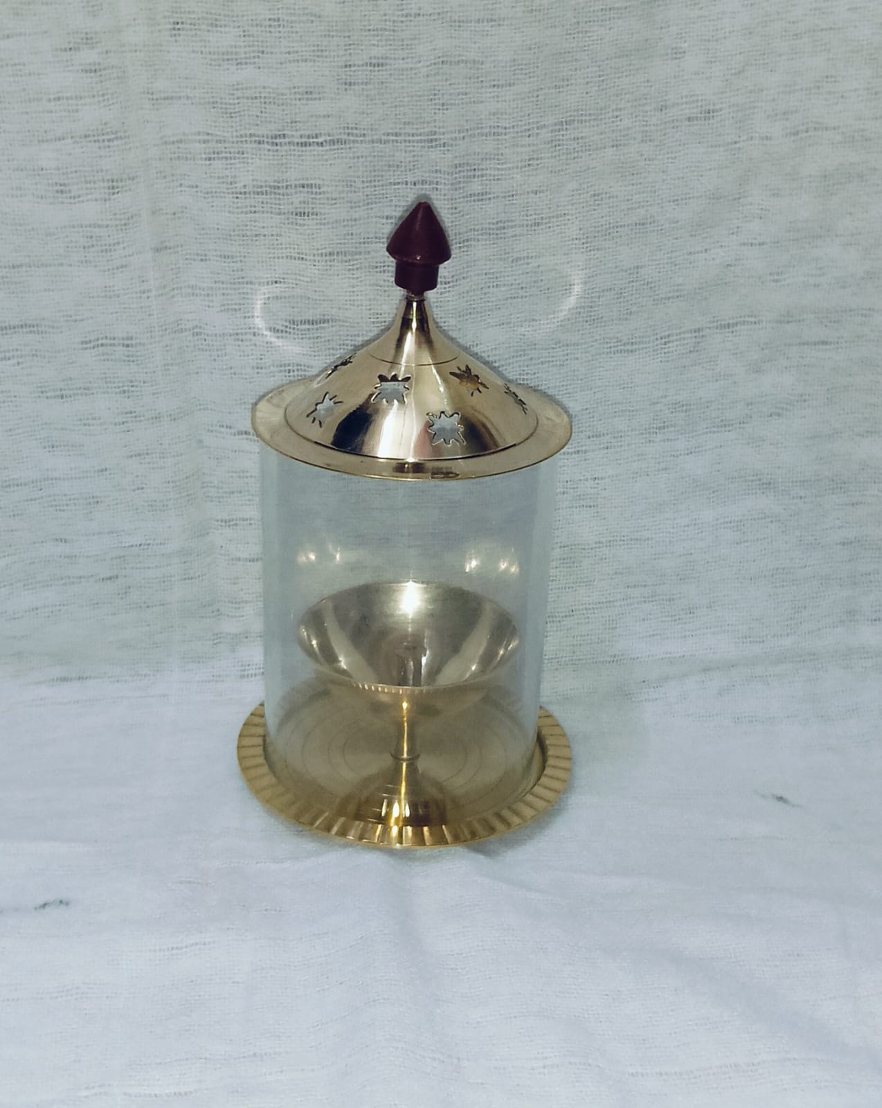This handcrafted Metal Akhand Deep is designed for eternal devotion. Made from high-quality brass with a protective glass cover, it allows your sacred flame to burn continuously for hours or days. Ideal for daily pooja, festivals, and spiritual ceremonies. A timeless addition to your temple and a meaningful gift for loved ones.